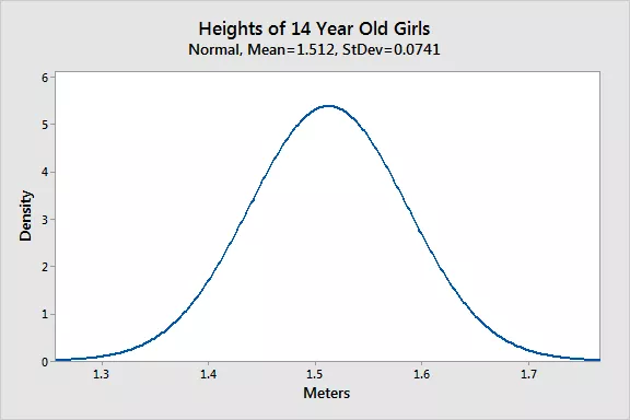 나는 통계에 전혀 지식이 없고 수학과도 거리가 먼 사람이다. 공부를 하면서 슬금슬금 나타나는 Normal Distibution의 정체가 궁금해졌다. 도대체 왜 정규분포를 사용하는 것일까? 이것은 통계의 유구한 역사에서 기원하는데 대부분의 자연 현상을 설명해주기 때문이다. 14살 소녀들의 키를 조사하여 분포도를 그려보자.