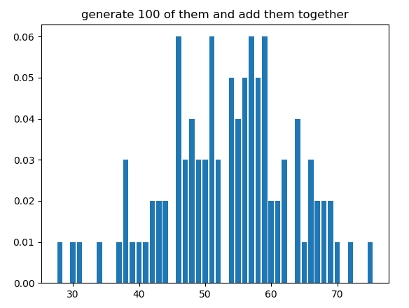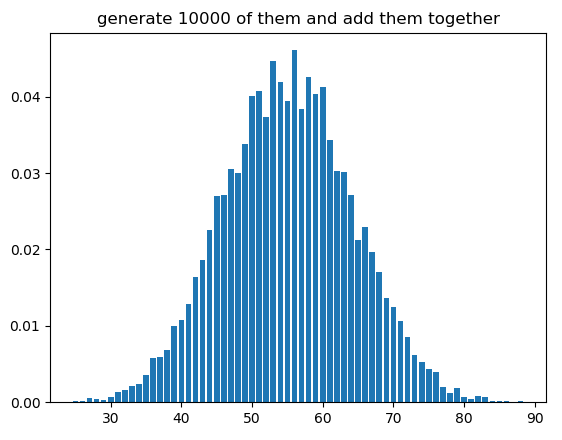 plt.title('generate ' + str(x) + ' of them and add them together')