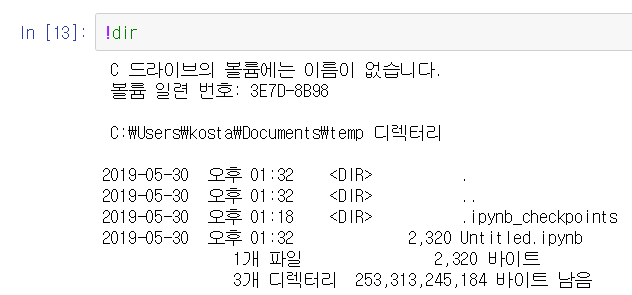 !를 사용하면 os의 명령어를 사용할 수 있다. %를 사용하면 주피터 노트북의 명령어를 사용한다는 것이다.
