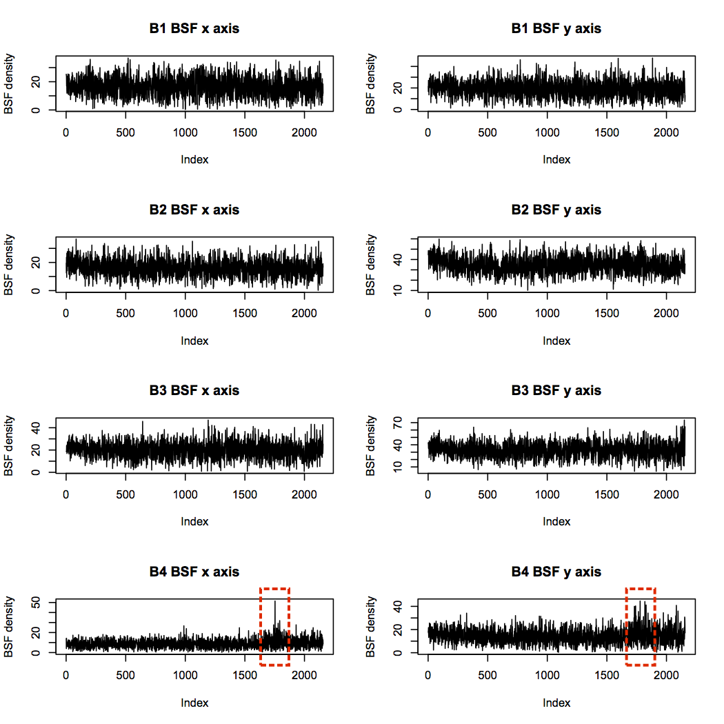 plot(b4[, 35], ylab="BPFI density",xlab="Index", main="B4 BPFI y axis", t="l")