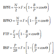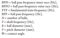 베어링은 이미 많은 연구가 되어 있어 파손에 관련된 특정 유형이 분류되어 있다. ball pass outer race(BPFO), ball pass inner race(BPFI), ball spin frequency (BSF), fundamental train frequency(FTF)와 같은 네 가지 유형이 있다.