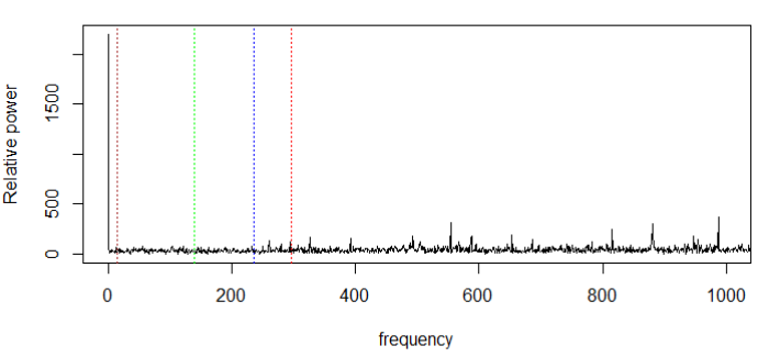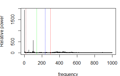 powers <- c(sum(fft.amps[vhf]), sum(fft.amps[hf]), sum(fft.amps[mf]), sum(fft.amps[lf]))